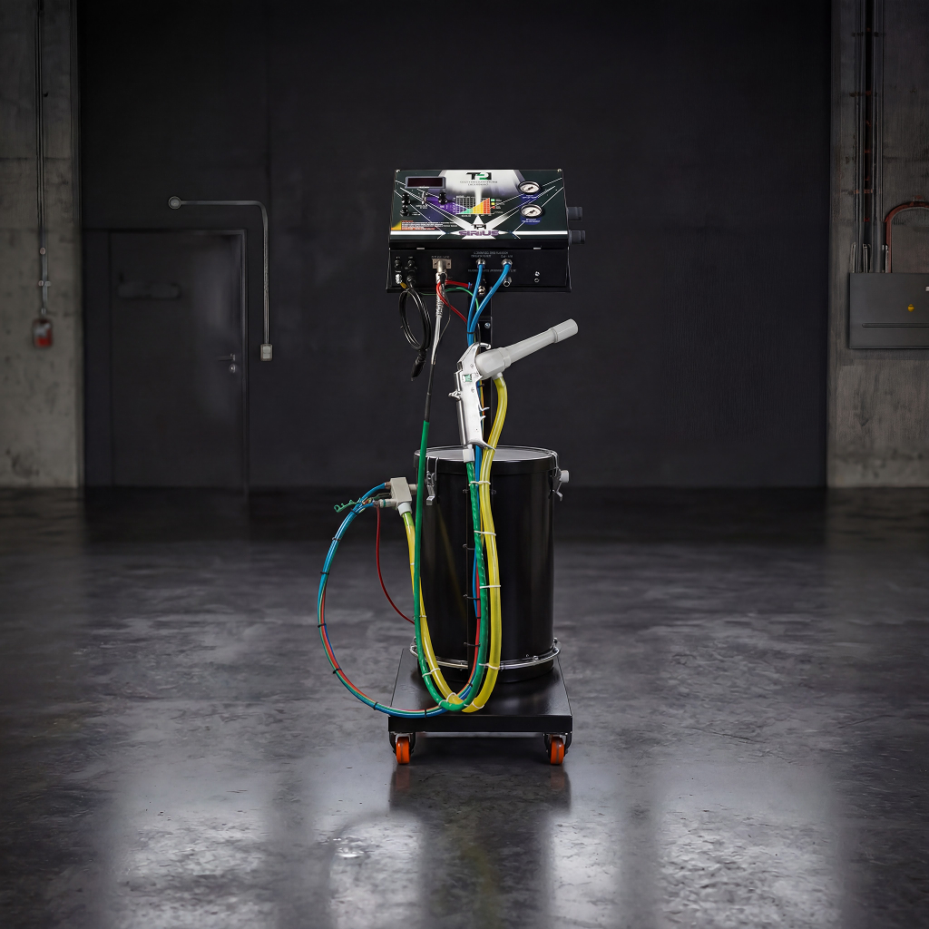 A fonte TPI SIRIUS possui todas as regulagens de alta tensão e controle de vazão do pó no painel, com controle de pressão de ar por regulador, e manômetro para vazão da tinta, transporte (adicional) e fluidização de pó. O sistema eletrônico é composto por placa única para facilitar a manutenção.